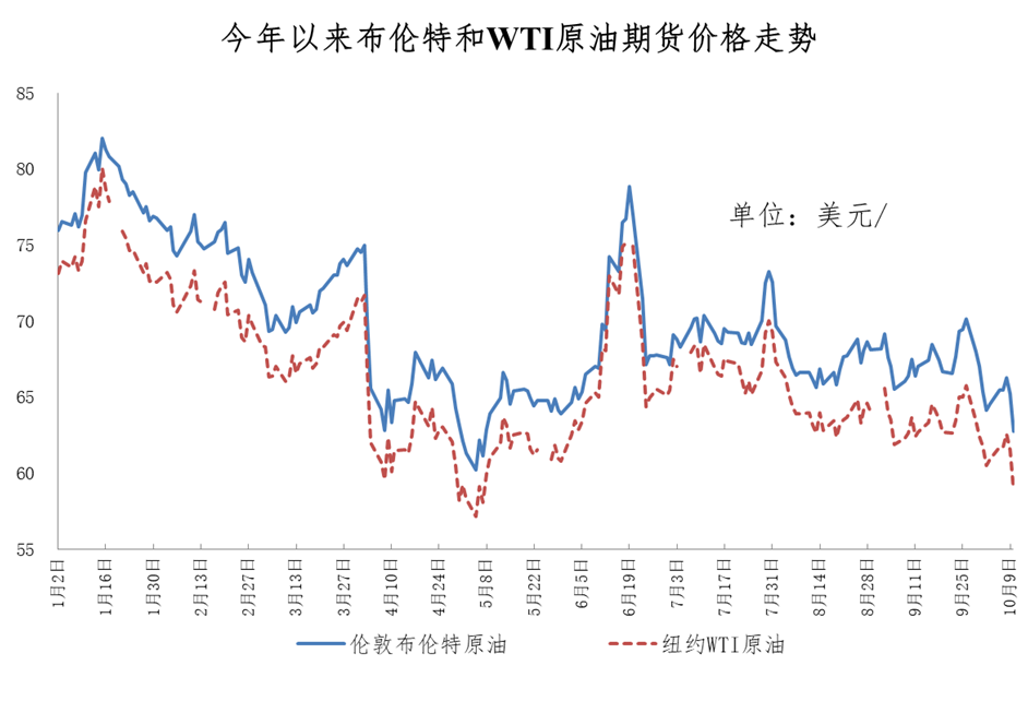 据国家发展改革委价格监测中心监测,本轮成品油调价周期内(9月23日至10月11日)国际油价呈震荡下降走势。
