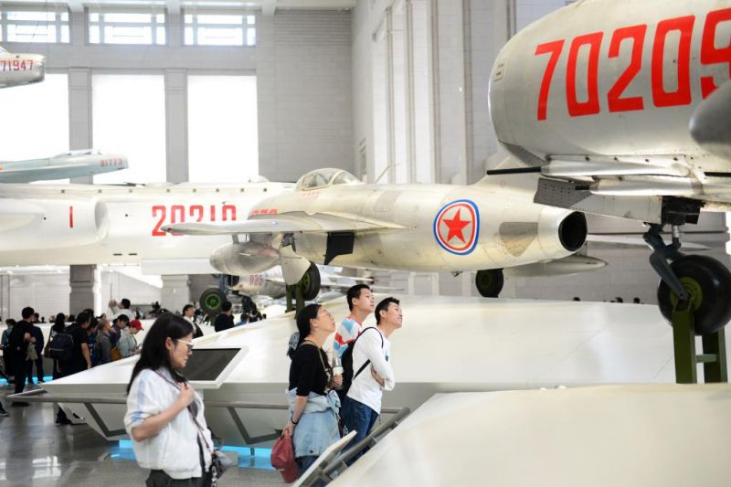 10月7日,人们在位于北京的中国人民革命军事博物馆参观游览。新华社发(王跃武摄)