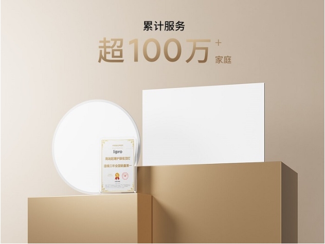 lipro 荣获「高端超薄护眼吸顶灯连续三年全国销量第一」权威认证!