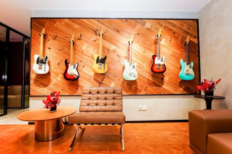 Fender 上海体验空间共2层,一楼包括新品展示区、吉他维修间和用于试弹体验的音箱房,不仅能为音乐人提供新品体验以及定制和维修服务,未来也将定期举办联结全球音乐人和国内玩家们的各类社群活动,包括但不限于新品体验活动、音乐人讲座沙龙、小型演出等。
