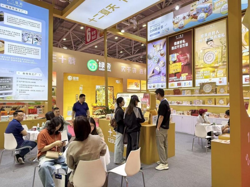 为期三天的第113届全国糖酒商品交易会,在南京国际博览中心圆满收官。作为食品饮料行业的年度盛会,本届展会现场人流如织,洽谈气氛热烈,汇聚了海内外众多知名品牌。本次展会也有深耕健康方便食品领域的“十二夏天”出席,以金色大气展位为窗口,凭借其扎实的燕窝原料产业链产供销实力、丰富的高品质产品矩阵与专业的品牌团队,吸引了全场目光,成为现场人气火爆的展位之一。合作咨询的客户络绎不绝,纷至沓来的脚步促成令人瞩目的关注焦点。