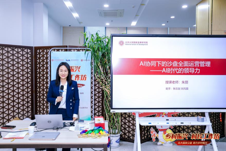 随后,北大国发院副研究员朱丽带领学员开展“沙盘+AI”创新课程,这一5.0版本的特色教学模式,通过模拟乡村产业项目全流程,让学员运用论坛中学到的“农业数字化”“集体经济运营”等理念,制定具体实施方案。朱丽老师还引入AI工具,指导学员通过数据模型分析村庄产业优势,优化资源配置方案,让科技赋能从“理论认知”转化为“实操能力”。