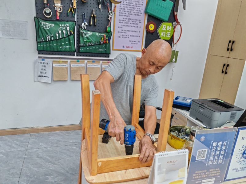 针对家庭工具闲置和居民参与不足的痛点,凯江社区创新推出“工具侠”共享家项目,探索“居民捐赠+物业采购+商户支持”的资源整合模式。通过数字化平台“好德行”小程序,实现工具预约、积分管理、服务评价全流程线上操作,跑通“居民点单—社区派单—能人接单—群众评单”的闭环服务机制。截至目前,共享家收集工具200余件,累计为80余位独居、高龄老人提供上门维修服务160余次,更换故障开关、灯管、水管等设施超40件,切实解决老年人居家安全难题。这一项目不仅激活了闲置资源,更增强了邻里互助的社区凝聚力。